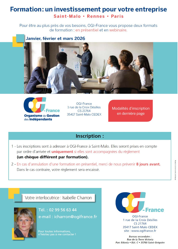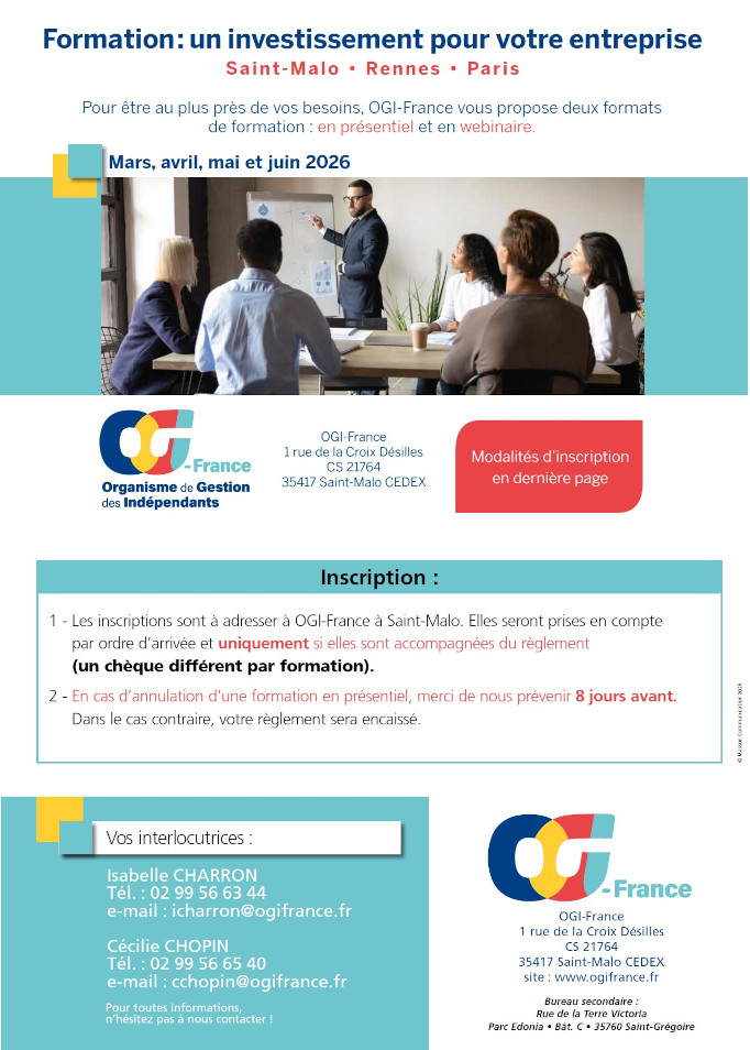 Pour être au plus près de vos besoins, OGI-France vous propose désormais trois formats de formation : en présentiel, en classe virtuelle et en webinaire. Les sessions ont lieu sur Saint-Malo, Rennes et Paris.