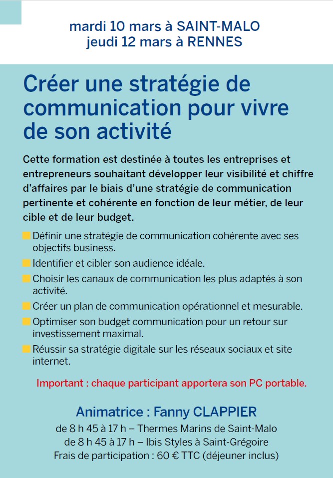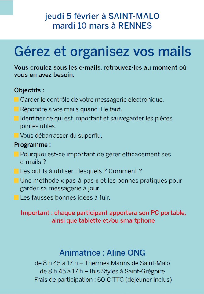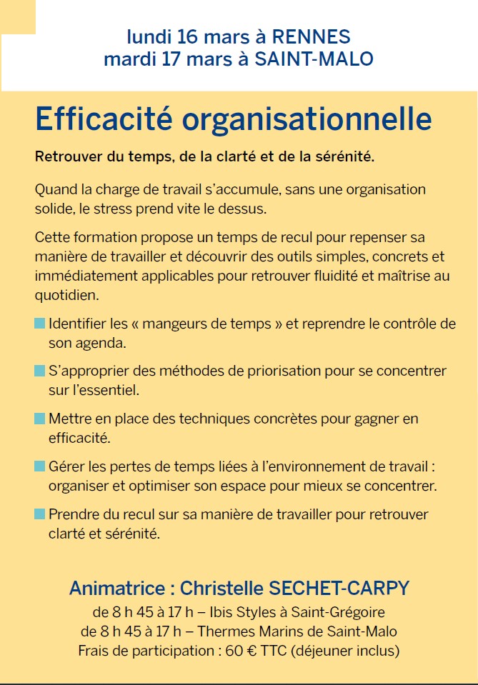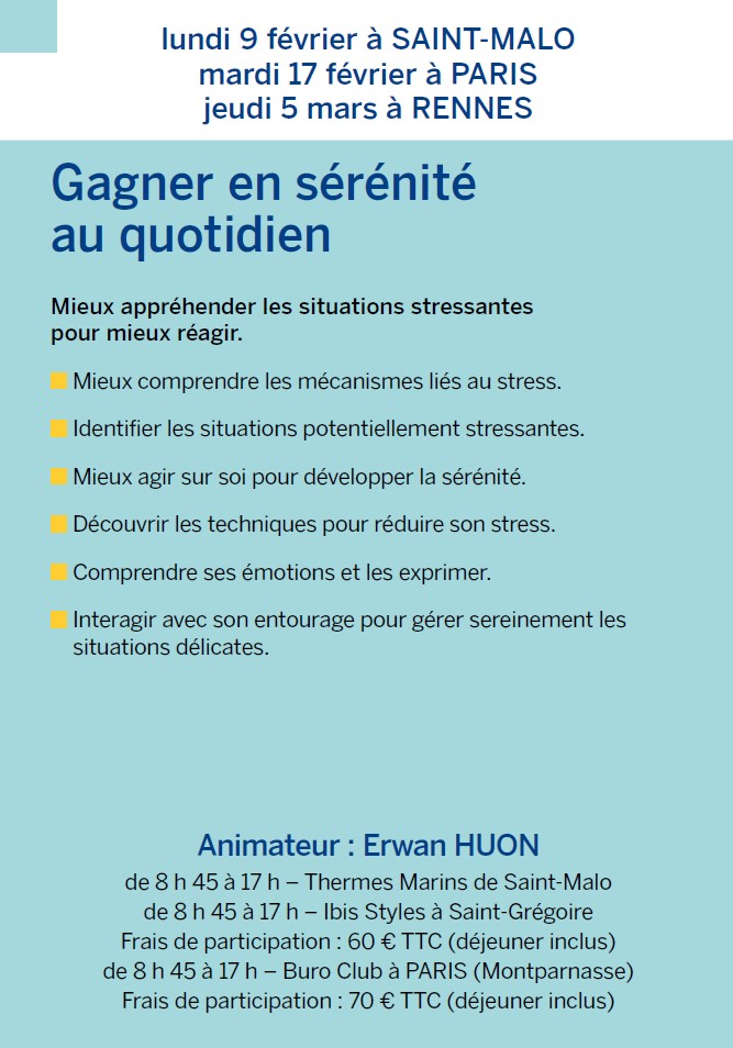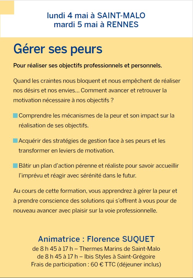 Le jour de la formation, un justificatif de la participation financière et une fiche d’appréciation sont adressés aux participants.