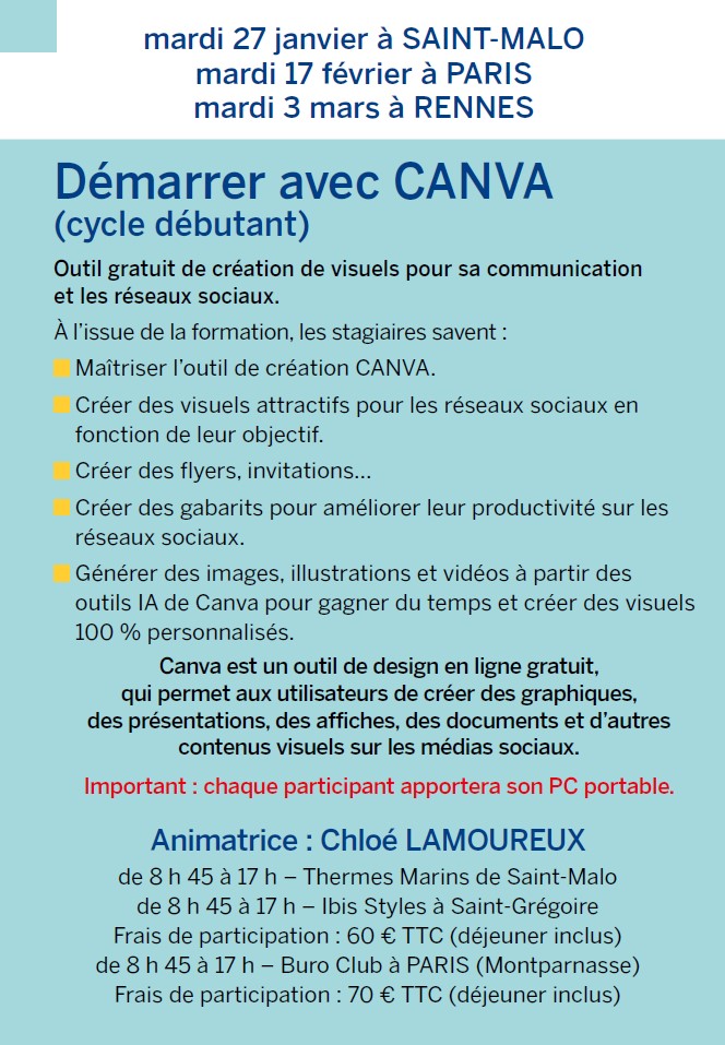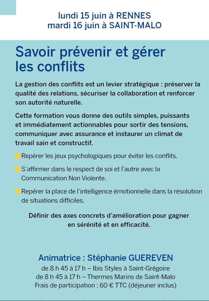 – En cas d’annulation, merci de nous prévenir 8 jours avant la formation.
