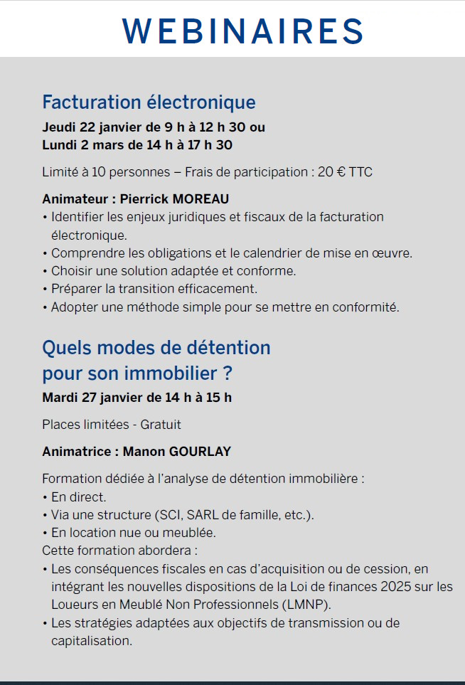 Le Programme de Formation des TPE et des professions libérales de l’Organisme mixte de Gestion agréé (OMGA) pour les mois de janvier, février et mars 2026 et le coupon réponse d’inscription sont à découvrir ci-dessous.