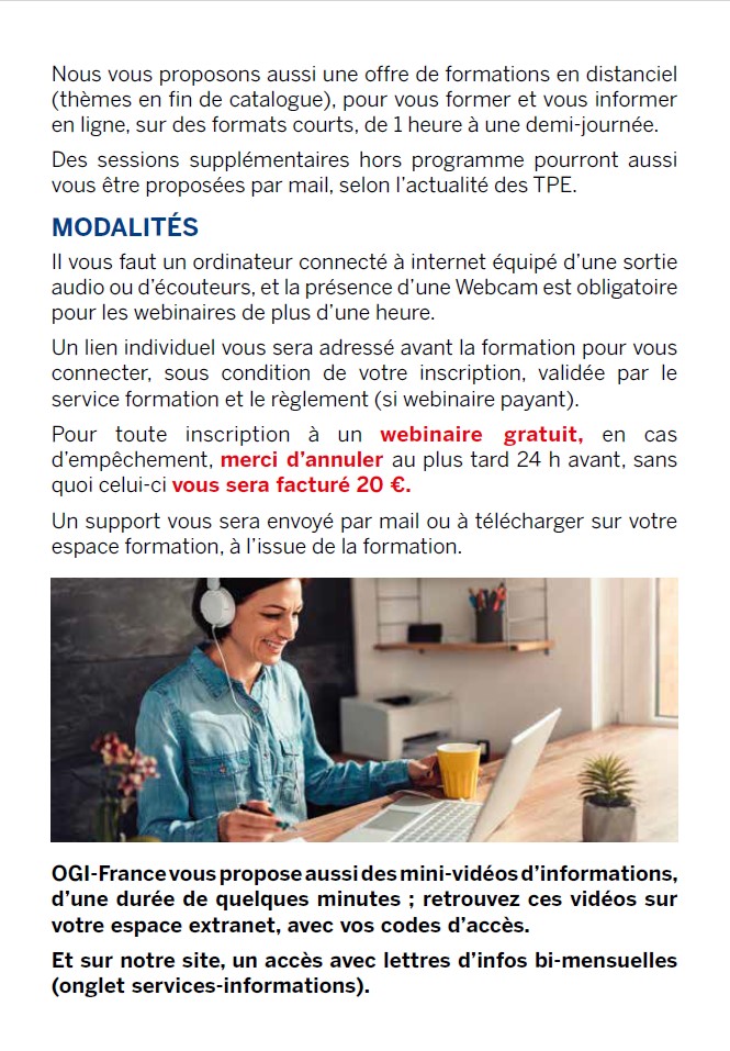 Outre l’adhérent de l’OMGA OGI-France, le bénéficiaire des formations ou des séances d’information organisées par OGI-France peut être le représentant que celui-ci désigne, soit son conjoint soit un(e) de ses salarié(e)s.