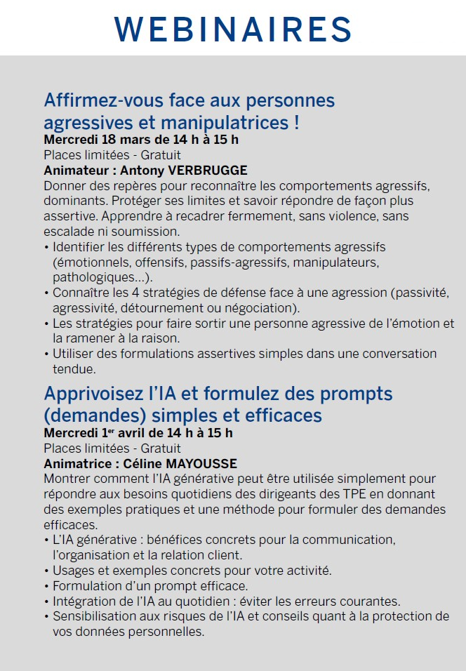Programme de Formation TPE – Professions libérales (janvier février mars 2025)