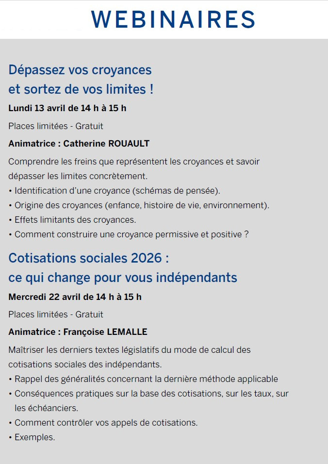 Le Programme de Formation des TPE et des professions libérales de l’Organisme mixte de Gestion agréé (OMGA) pour les mois d’avril, mai et juin 2026 et le coupon réponse d’inscription sont à découvrir ci-dessous.